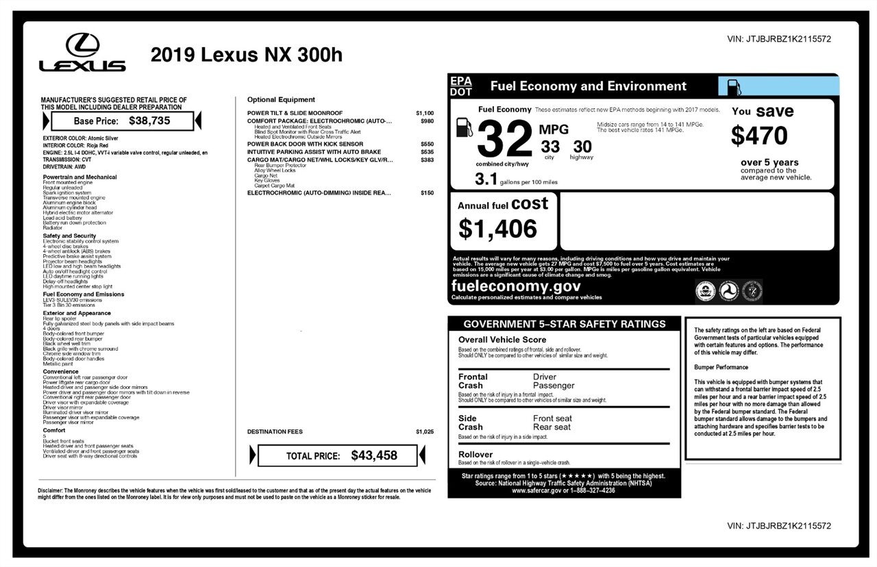 2019 Lexus NX 300h HYBRID 4-Door Wagon
