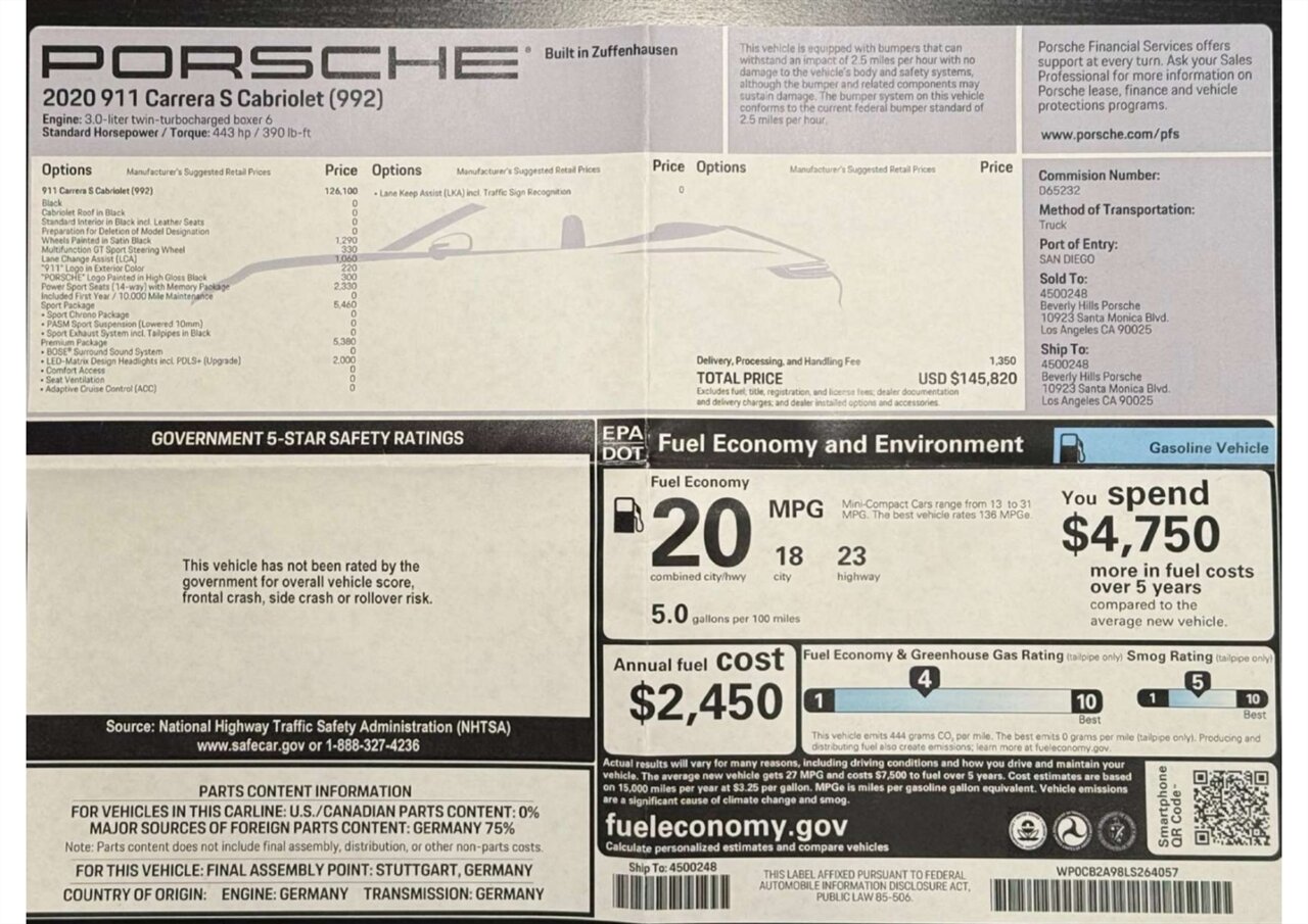 2020 Porsche 911 Carrera S Cabriolet Sport Package for sale in Los Angeles CA