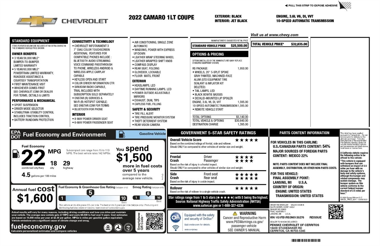 RS, 1LT, One Owner, ENGINE, 3.6L V6, DI, VVT. 10-SPEED AUTOMATIC TRANSMISSION, Factory Remote Start, $5,140 in Factory Options